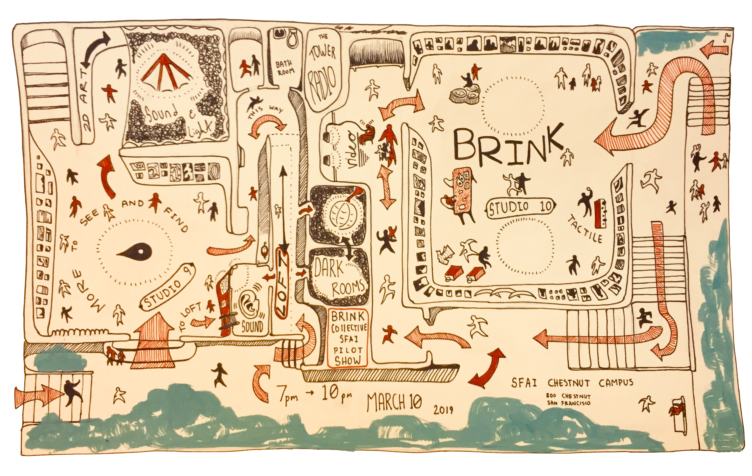 BRINK events occasionally contain interactive art, time-based pieces, performances, and talks. We encourage you to engage and talk with artists about their work. Ask questions, make professional suggestions and recommendations, and share contacts with artists you think you might click with. Contact sheets will be available at every artist’s space, as well as a mailing list form for BRINK events at the front table.